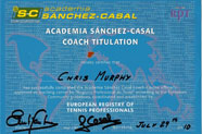 From 2007-10, trained with Daniel Sorribas at the Sanchez-Casal Academy, studying and practising the drills, methods and philosophy of the Spanish system which produces top 10 players, including Andy Murray. Daniel was the coach of Guillermo Canas. Gained the Spanish RPT certificate. Returned to the Academy to train with Emilio Sanchez and gained the next, level 4 RPT, coaching certificate in 2011. Training with world class coaches and being assessed by them, instilled in me the ethic of helping each player to develop, regardless of their initial ability level.