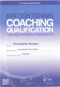 Giffnock Tennis Club, Glasgow, from 2013. Coaching Junior and Adult groups plus individual lessons. Newlands Tennis Club, Glasgow, 2009-13. Assisted with junior groups, at Red, Orange and Yellow levels. Strathgryffe Tennis Club, Houston, Renfrewshire, from 2008-12. Coached Juniors and Adults. Also, individual coaching, beginners to performance players. Langbank Tennis Club. Developing the mission to help local young people play tennis, at Red, Orange and Green levels. Coached various Junior Groups, from 2011. Adult Cardio Tennis from 2013. Joined the coaching team at Brodie Park, 2011-13 with "Tennis for Free", working with Juniors but focussing on Adult beginners and improvers. Initiated Men's Team for Paisley Tennis Club.